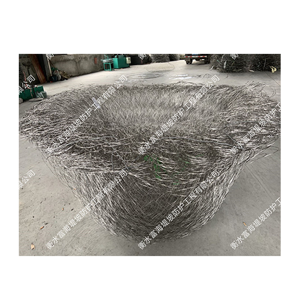此種材質(zhì)的合金網(wǎng)兜不易被切斷,破損率低,且因合金網(wǎng)兜無固定形狀更容易貼近河底。采用吊裝拋投定位相對較準(zhǔn)確,塊石不易被水流沖走